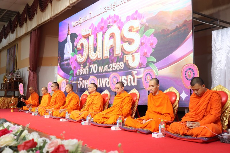 ภายในงานประกอบด้วยกิจกรรมตักบาตร ถวายภัตตาหารเพล ถวายจตุปัจจัยและไทยธรรมแด่พระสงฆ์ รวมถึงพิธีมอบรางวัลเชิดชูเกียรติครูและบุคลากรทางการศึกษา โดยมี ผู้ว่าราชการจังหวัดเพชรบูรณ์ เป็นผู้มอบรางวัล บรรยากาศเป็นไปด้วยความสงบ เรียบง่าย และเปี่ยมด้วยความศรัทธา สะท้อนถึงคุณค่าและความสำคัญของวิชาชีพครูในการพัฒนาคุณภาพการศึกษาและเยาวชนของชาติ