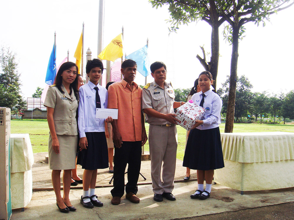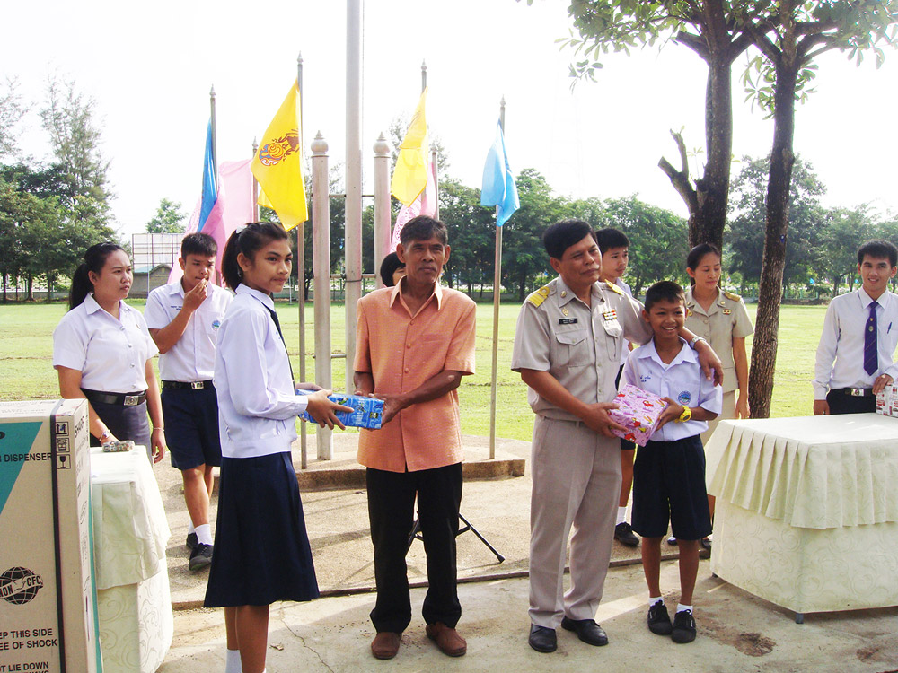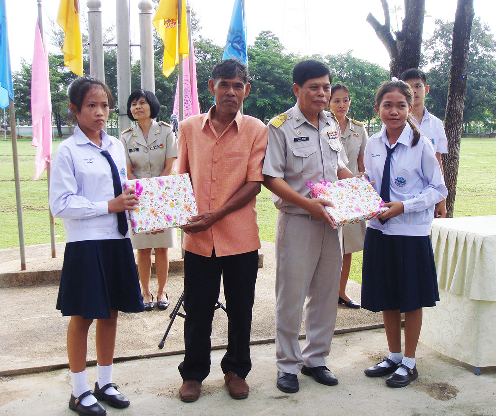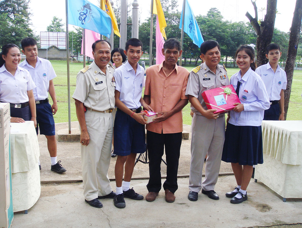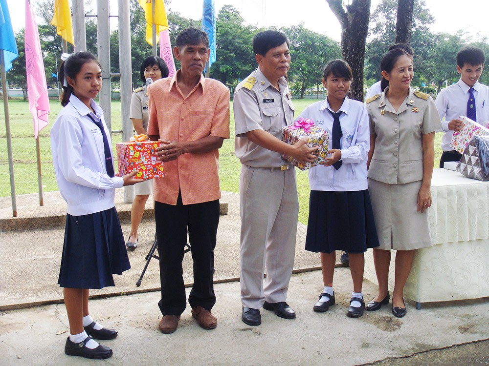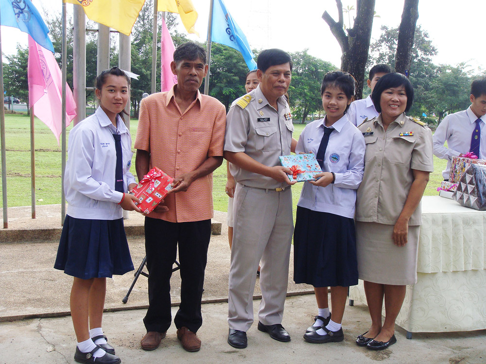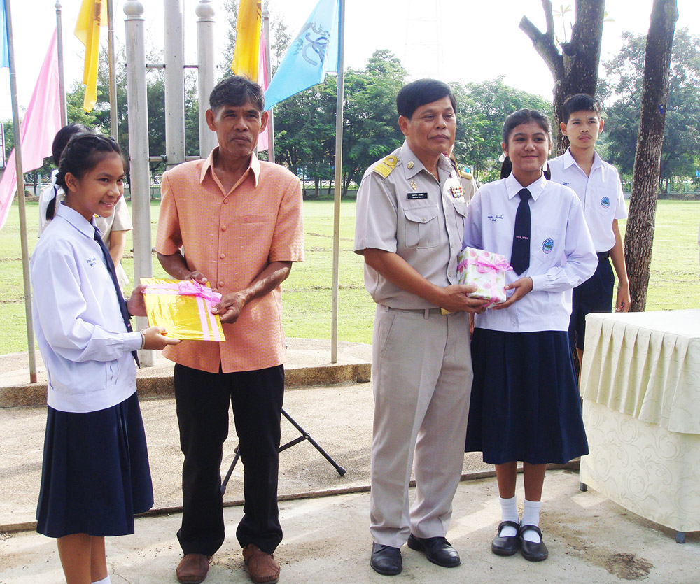 อาจารย์สมทรง สุขพัมฒ์ กับ นายจรัญ กำไรทรัยพ์ ร้ับมอบขงอที่ระลึกจากคณะครู และ นักเรียน เมื่อเข้าวันที่ 29 กันยายน 2557 ก่อนที่จะถึงวันเกษียณอายุราชการ ของทั้งสอง