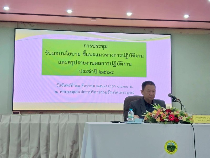 วันที่ 22 ธันวาคม 2568 เวลา 08.30 – 16.30 น. โรงเรียนองค์การบริหารส่วนจังหวัดเพชรบูรณ์ (วังชมภูวิทยาคม) นำโดย นายอภิชาฎ พงษ์ภู่ ผู้อำนวยการสถานศึกษา พร้อมด้วยคณะครู เข้าร่วมการประชุมรับมอบนโยบาย ชี้แจงแนวทางการปฏิบัติงาน และสรุปรายงานผลการปฏิบัติงาน ประจำปี 2568 ณ หอประชุมองค์การบริหารส่วนจังหวัดเพชรบูรณ์